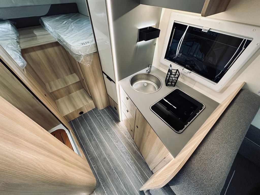 Ten kamper o zabudowie półzintegrowanej oferuje 5 miejsc do jazdy i do 6 miejsc do spania, co czyni go idealnym wyborem dla klientów lubiących krótsze kampery do 7 m.